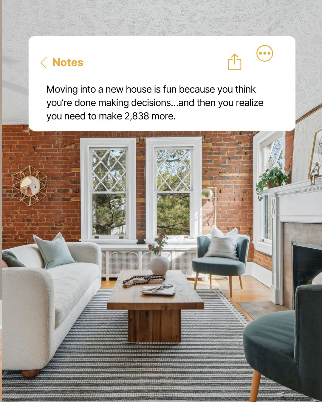 Message: Moving into a house is exciting because it feels like the big decisions are finally behind you.