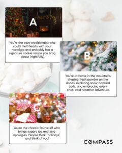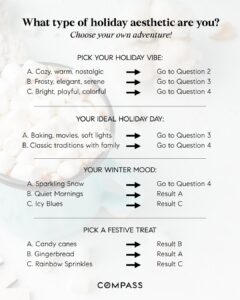 Message: The best part about the holidays? There’s no single way to celebrate them. Some people shine bright, some nestle in, some keep things minimal…and all of it counts. Swipe to discover which holiday aesthetic captures your holiday aesthetic this year!