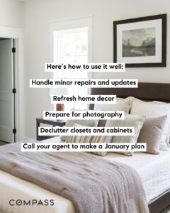 When the new year hits, you won’t be rushing, you’ll be ready to hit the market with momentum.